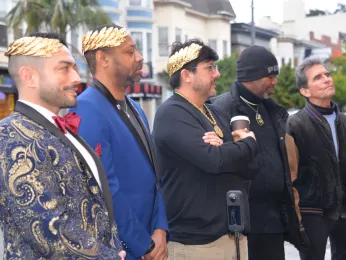 “It may have cost him a seat on the Board of Supervisors,” Leno said, referring to the fact that Ross was named by gay supervisor Harvey Milk in his “political will” as someone who should succeed him if he was killed. Milk and then-mayor George Moscone were assassinated on November 27, 1978. Then-mayor Dianne Feinstein, however, was reportedly not pleased that Ross was at the time the reigning emperor and disliked the drag connotations that the Imperial Court stood for. (Feinstein died in 2023.) Ultimately, Feinstein named Harry Britt, a gay man, to Milk’s seat. Ross later served on the Golden Gate Bridge Highway and Transportation District board for 18 years.